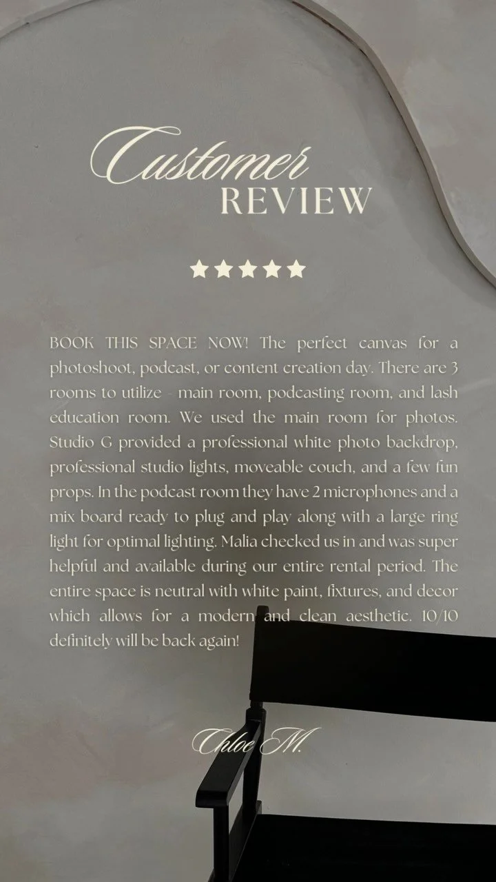 Studio G MKE believes that every creator deserves their own unique space. As artists, creatives, beauty industry professionals, entrepreneurs, and dynamic individuals, we crafted the ideal place we've always longed for — a breathtaking, motivational sanctuary on the edge of Milwaukee (and easily accessible off HWY 43 above GÄDIS Beauty Studio) that surpasses the conventional co-working space or content studio.